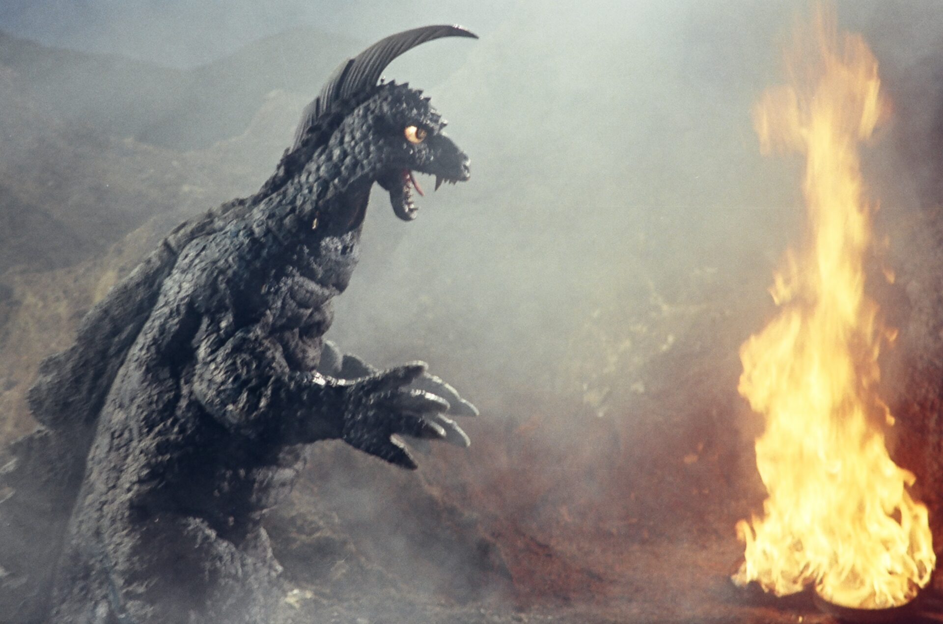 After appearing near Asagiri Volcano, it ravaged the village situated at the bottom of the mountain. Undeterred by airborne attacks from the MAT Arrow 1 and MAT Gyro it continued its rampage, surrounding the village in flames with its Magma Ray.
