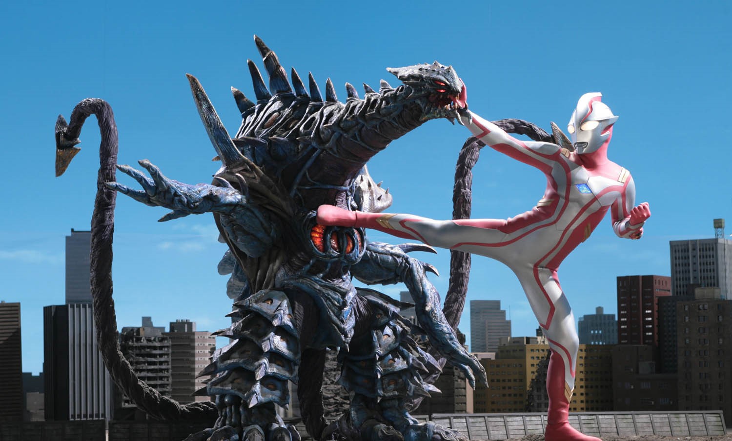 A space monster with two long tails on its metallic blue body was Ultraman Mebius’s first opponent on Earth.