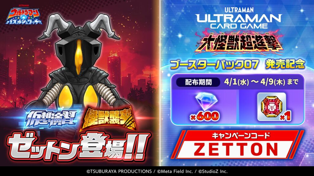 To commemorate this milestone, a variety of special projects for the release of Ultraman Card Game Booster Pack 07: Attack of the Great Kaiju will be delivered in collaboration with Special Ambassador Zetton.