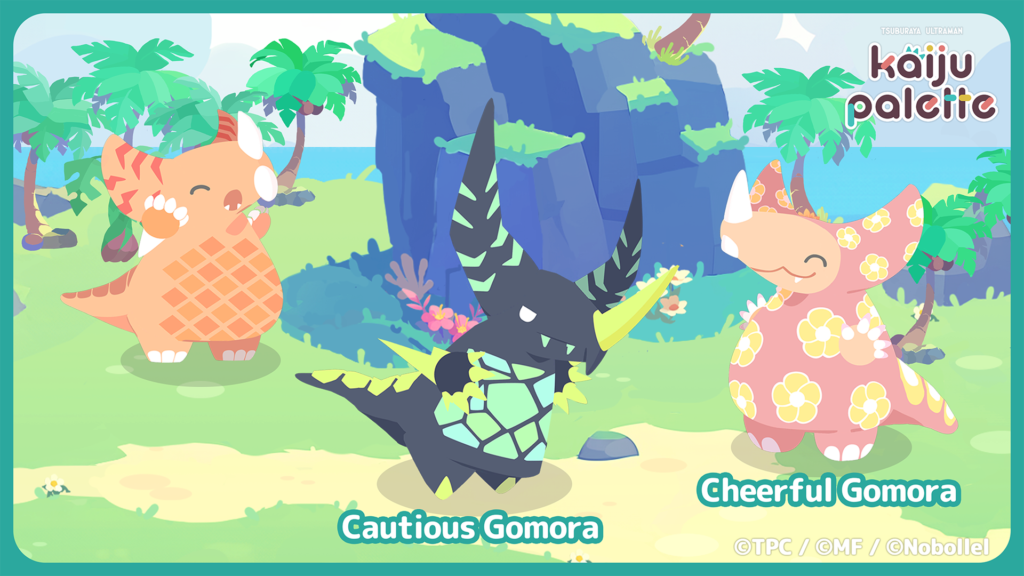 In the world of “Kaiju Palette,” players can observe popular, familiar Kaiju from Tsuburaya Productions’ works, such as Gomora, Peguila, and Mukumuku, as they live freely in their respective Kaiju Dens.